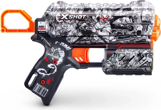 Uživajte v akcijski zabavi z blasterjem X-Shot Skins Flux, ki navduši s komičnim/grafitnim dizajnom in udobno ergonomijo. Zaradi kakovostne izdelave in enostavnega polnjenja je idealen za hitre obračune doma in na prostem. Izstrelki z zračnimi žepki letijo dlje in stabilneje – natančno tja, kamor merite.