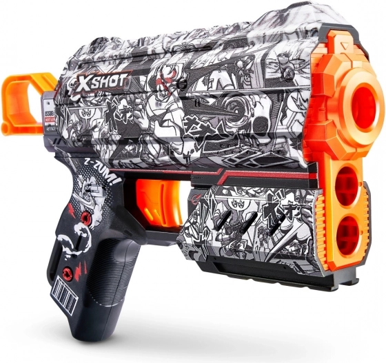 Slogovni penasti blaster X-Shot Skins Flux prinaša v resničnost igralno personalizacijo videza in odlično zmogljivost. Ponuja moderen potisk, hitro ročno polnjenje, praktičen predalček za 2 izstrelka ter v paketu 8 izstrelkov s tehnologijo air pocket za doseg do 27 metrov.