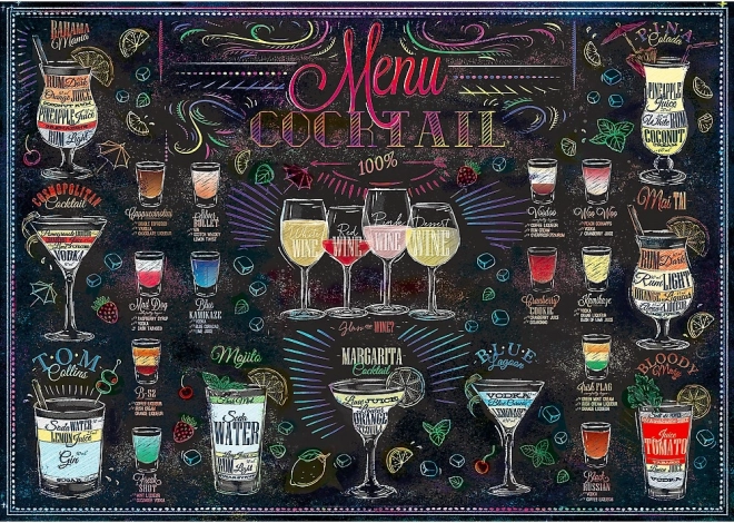 Uživajte v sprostitvi ob sestavljanju dizajnerskega motiva menija koktajlov. Zaradi 500 kosov je sestavljanka idealna tako za začetnike kot za izkušene, ki iščejo kombinacijo elegantnega motiva in prijetnega izziva. Posebna površina zmanjšuje odseve, zato barve bolje izstopajo, posamezne koščke pa je lažje razlikovati.