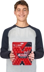Bodite vedno pripravljeni na akcijo z nadomestnimi kroglicami za blasterje X-Shot. Pakiranje vsebuje 50 rdečih penastih kroglic z nagubano površino za boljši oprijem in stabilen let tudi pri visoki hitrosti. Jasna barva olajša zbiranje po igri in prihrani čas.