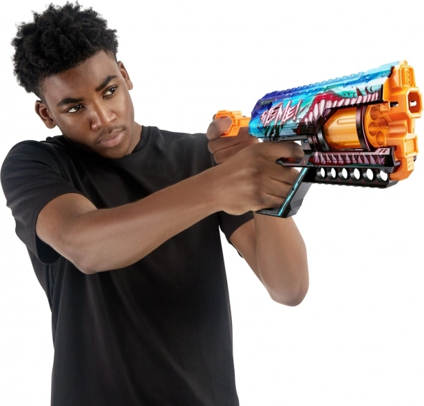 Blaster X-Shot Skins Griefer THRASHER združuje slog, zmogljivost in zabavo v enem. Vrtljiv valj sprejme 6 puščic, zato si pripravljen streljati brez nepotrebnih prekinitev. Zaradi optimizirane konstrukcije in kakovostne tehnologije X-Shot blaster dosega odlično natančnost in doseg do 27 m.