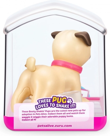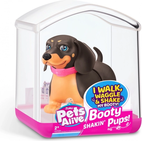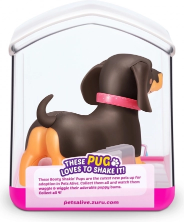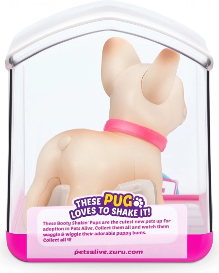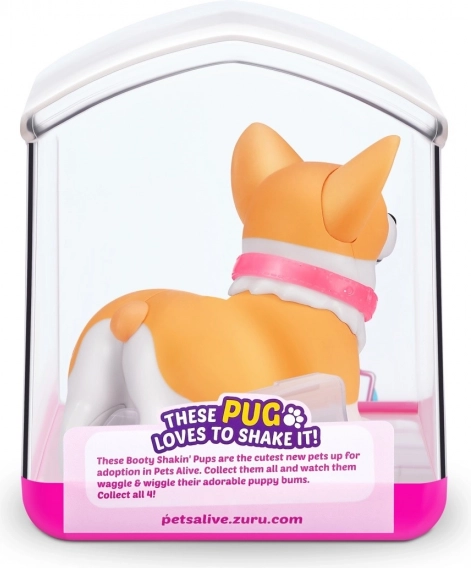 Čas je, da si najdeš nove ljubke žepne prijatelje! V zbirki so 4 mladički Booty Shakin’: prisrčni corgi, pogumni jazbečar, plesni mops in neustrašni francoski buldog – katerega boš izbral? Vklopi mladička in opazuj, kako hodi, ziba ritko in maha z repkom. Vsak mladiček ima svoj snemljiv bleščeč ovratnik in ljubke nalepke. Dobavljeni so v edinstveni embalaži, ki hkrati služi kot hišica. Pripelji si domov svojega najljubšega ljubljenčka še danes!