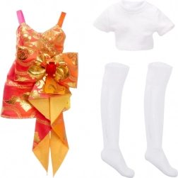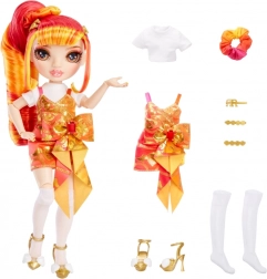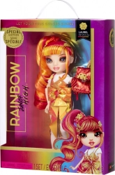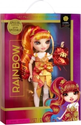 Laurel zasije v oranžno–zlatih kombinacijah z izrazitimi detajli, ki poudarijo modni značaj serije RAINBOW HIGH.