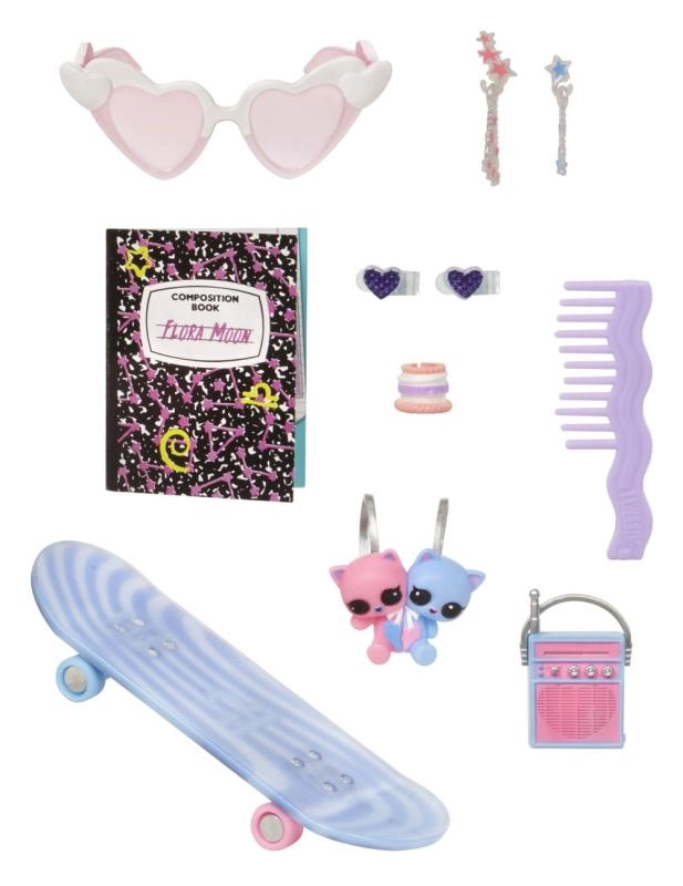 Set vključuje mini fotoaparat, beležko, glavnik in druge super drobnarije. Dodatki spodbujajo pripovedno igro, oblikovanje pričesk in modne preobrazbe.