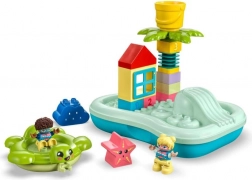 Spoznajte LEGO DUPLO vodni park, ki otrokom prinaša zabavo in priložnost za učenje hkrati. Ta poučna igrača otrokom omogoča, da s številčnimi kockami »rastejo« palmo in opazujejo, kako dež iz oblaka zaliva elemente parka.