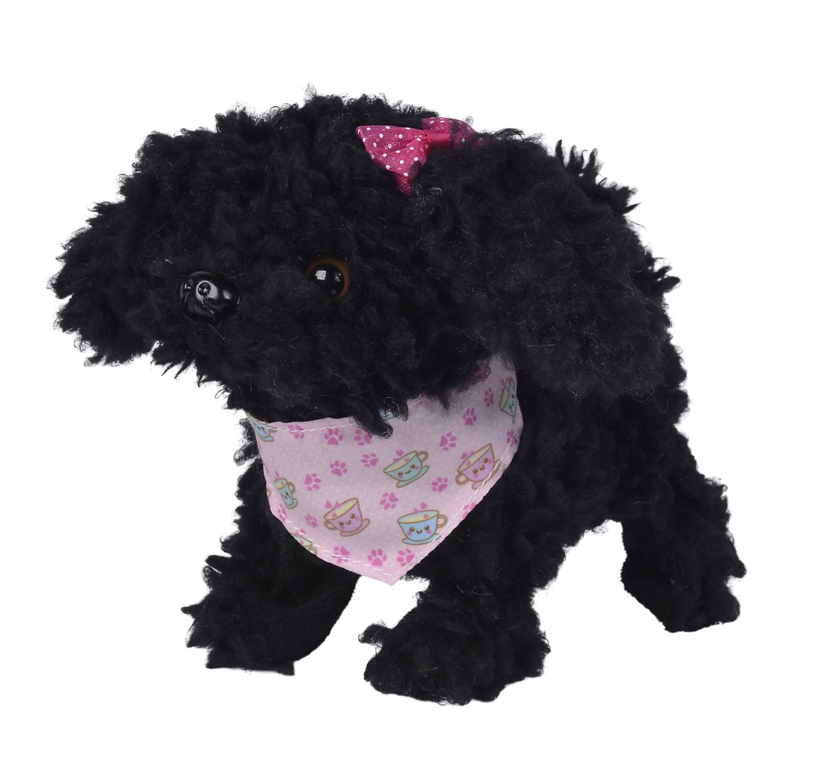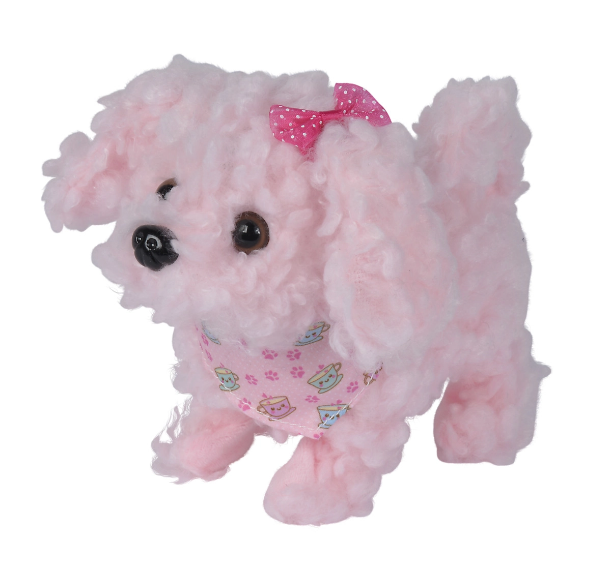 Zaradi kompaktnih mer je kužek idealen za cartanje in vsakodnevno igro. Stajliš rožnat šal in prisrčna pentljica dodajata igrači očarljiv videz, ki pritegne na prvi pogled.