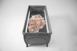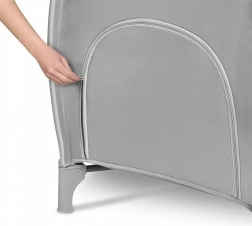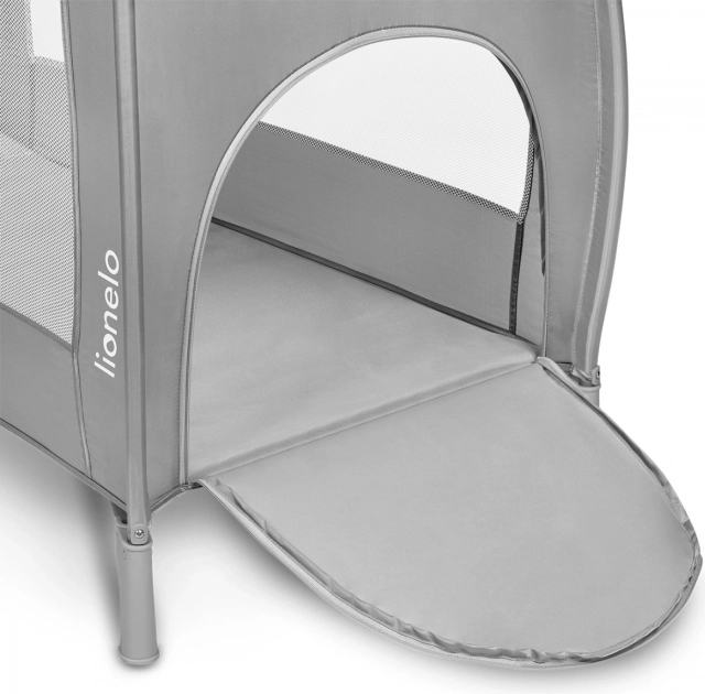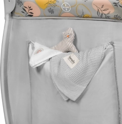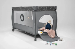 Posteljica je opremljena s mre7eo za optimalno kro7eenje zraka, kar star61em omogo0da, da lahko enostavno nadzorujejo svojega otroka. Prakti0dni stranski 7ep je idealen za shranjevanje otrokovih najljub61ih igra0d, stranski vhod z zadrgo pa pove0duje njeno funkcionalnost.