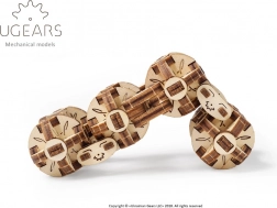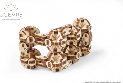 Flexi kocka znamke Ugears je edinstven mehanski 3D model, navdihnjen s steampunkom. Osem med seboj povezanih krogelnih tečajev omogoča tekoče upogibanje in prevračanje, zato zlahka ustvarite različne geometrijske oblike – od pravokotnika do kompaktne 3D kocke. Vsaka krogla je mini mehanizem iz šestih segmentov, povezanih s premičnimi sklepi.