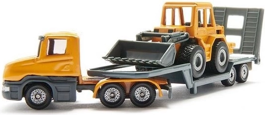 Posebna zaščita in gumijaste pnevmatike zagotavljajo udoben in varen prevoz stroja. Set vsebuje nakladalnik z gibljivimi deli na gumijastih kolesih. Privlačna igrača za najmlajše bo obogatitev vsake igre.