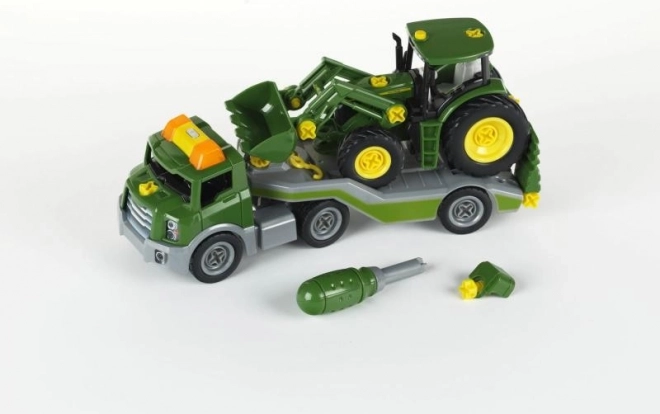 Odlično kot darilo za male navdušence nad tehniko in kmetijskimi stroji. Po sestavljanju je traktor pripravljen na prevoz, nakladanje in razkladanje, kar razširja možnosti igre in razvija domišljijo.