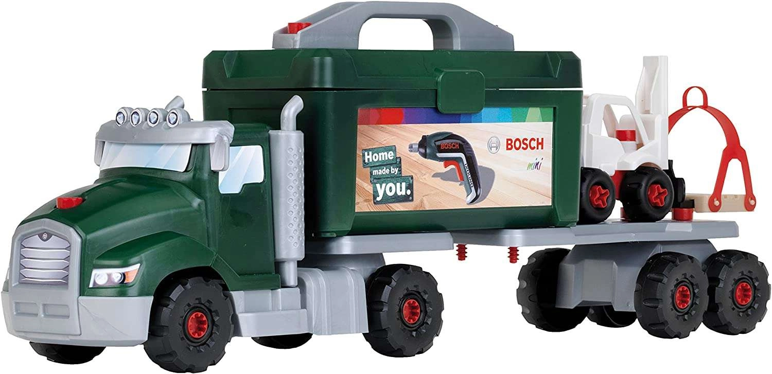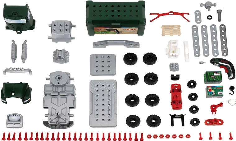 Otroški gradbeni set vijačni tovornjak BOSCH znamke Klein ponuja skoraj neskončne možnosti igre. V paketu je 86 delov, vključno z odstranljivim zabojem za orodje, prikolico, žerjavom, vrtalnikom in majhnim viličarjem. Otroci vadijo spretnost, logiko in domišljijo, set pa bo zaradi robustne izvedbe zagotavljal zabavo dolga leta.