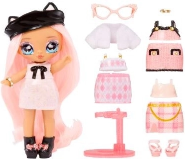Mini punčka z rožnatimi lasmi, simpatičnimi dodatki in izrazitimi očkami. Idealna velikost za majhne ročice za vsakodnevno igro in zbiranje.