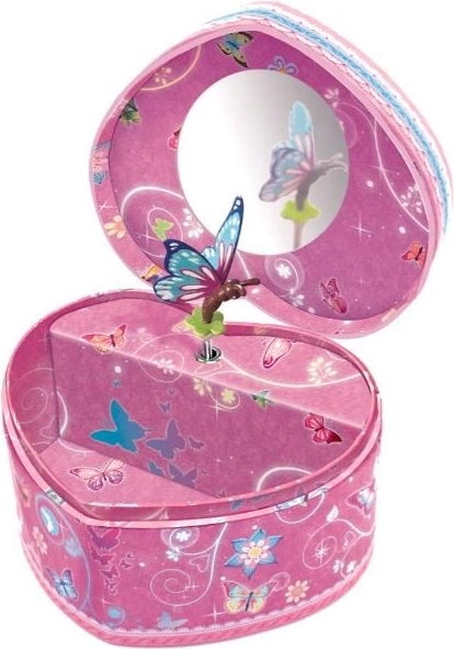 Lepa glasbena skrinjica v obliki srca, ki predvaja klasično melodijo in pri odpiranju se figurica vrti. Ne potrebuje baterij zaradi posebnega mehanizma, ki zagotavlja dolgo življenjsko dobo.