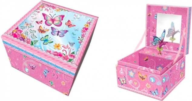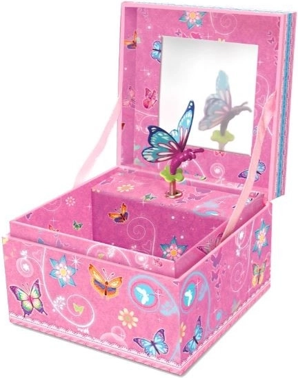 Klasična glasbena skrinjica z motivom metuljčkov. Odprite jo in figurica se bo začela vrteti ob spremljavi klasične melodije. Ko melodija konča, jo preprosto ponovno navijte. Skrinjica vsebuje tudi ogledalo in prostor za shranjevanje drobnarij.