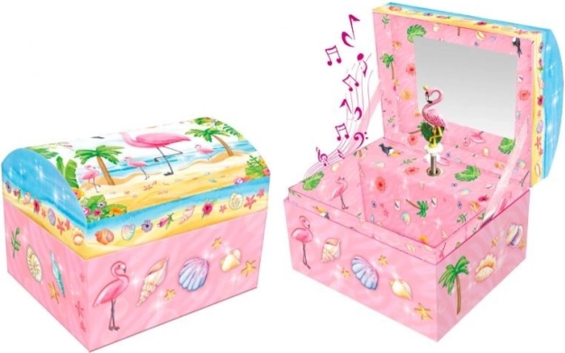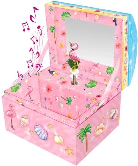 Glasbena skrinjica Pecoware z motivom plamenca prinaša klasično melodijo, ki jo zaženete s preprostim zasukom, ter razkriva prostor za shranjevanje malih zakladov.