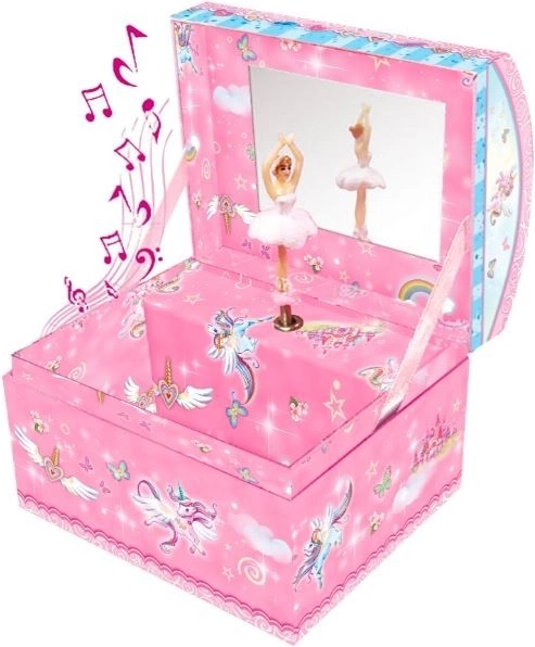 Glasbena skrinjica z motivom samoroga je idealno darilo za ljubitelje pravljic. Ob odprtju skrinjice začne igrati klasična melodija in figurica samoroga se začne vrteti.