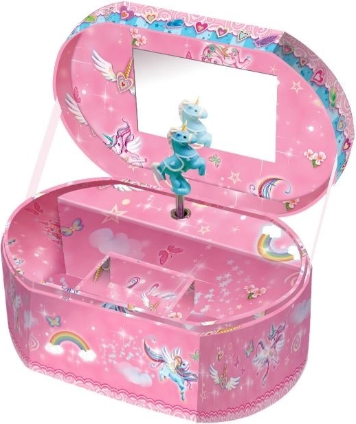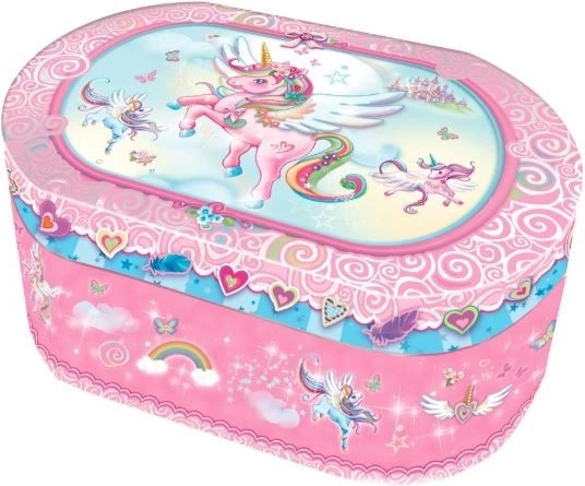 Skrinjica vsebuje ogledalo za pregled vašega videza in ločen predalček za shranjevanje drobnih zakladov. To naredi ta izdelek popoln dodatek za vsako otroško sobo ali kot čudovito darilo za ljubitelje samorogov.