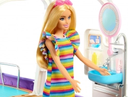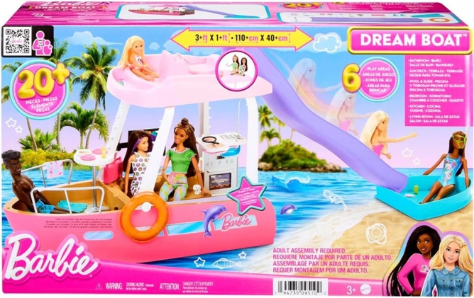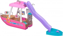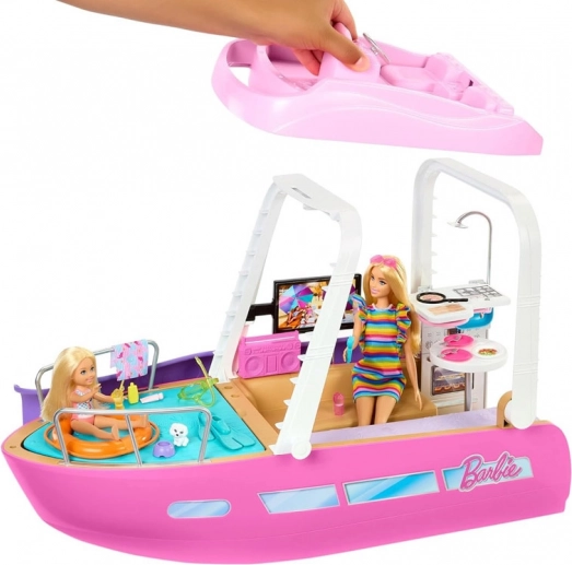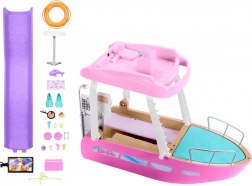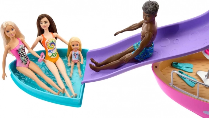 Ta stilska jahta z merami približno 91 cm v širino in 30 cm v višino ponuja veliko prostora za panenke in njihove prijatelje. Otroci lahko krmarijo jahto na zgornji palubi, se sončijo in se spustijo po vijoličnem toboganu naravnost v moder bazenček. Odstranljivo zgornje nadstropje razkrije podrobno izdelano notranjost za enostavno igranje.
