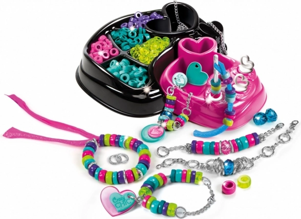 Komplet za izdelavo zapestnic CRAZY CHIC je idealen za male ustvarjalke, ki imajo rade barve in modo. Zahvaljujoč praktični srčasti osnovi, priseskom in pregledni organizaciji delov bodo otroci nakit izdelovali preprosto in z veseljem.