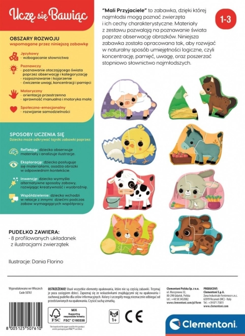 Ta komplet sestavljank »Mali prijatelji – živali s kmetije« znamke CLEMENTONI otrokom ponuja prvi korak v svet sestavljank. Različne stopnje težavnosti (2, 3 in 4 kosi) pomagajo prilagoditi igro starosti in spretnostim otroka, medtem ko pisane ilustracije kmečkih živali spodbujajo domišljijo in veselje do odkrivanja.