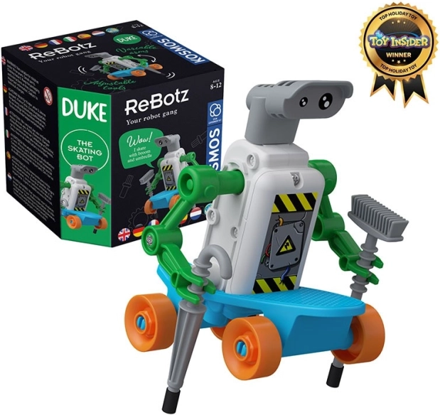 Robotsko igračo Kosmos Duke je zaradi preglednih navodil enostavno sestaviti, kar omogoča hitro povezovanje posameznih delov. Po vstavitvi motorja in treh baterij AAA se Duke premika po prostoru, pri čemer lahko na njegovo gibanje vplivate z nastavitvijo položaja njegovih rok z dežnikom in metlo. Ta igrača ne nudi le zabave, ampak tudi razvija inženirske spretnosti in razumevanje mehanike.