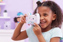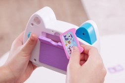 Vstopite v domišljijski svet z igračarskim fotoaparatom Kitty Camera iz Gábijinega čarobnega domka. Otroci lahko vstavljajo tri plastične “fotografije”, pogledajo skozi iskalo in ob pritisku gumba opazujejo, kako mucka pomežikne in “izpljune” sličico. Realistični elementi, kot so barvni gumbi za pritiskanje in kolesca za vrtenje, naredijo to igračo idealno izbiro za predšolske otroke.