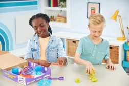 Ultimativni komplet za ljubitelje kinetičnega peska prinaša 900 g peska v treh barvah (rožnata, rumena, modrozelena) in 10 priročnih orodij, vključno s 3 ekskluzivnimi rezalnimi pripomočki za osupljive učinke. Otroci lahko pesek mešajo, plastijo, režejo, stiskajo in oblikujejo po domišljiji – igra je privlačna, pomirjujoča in varna.