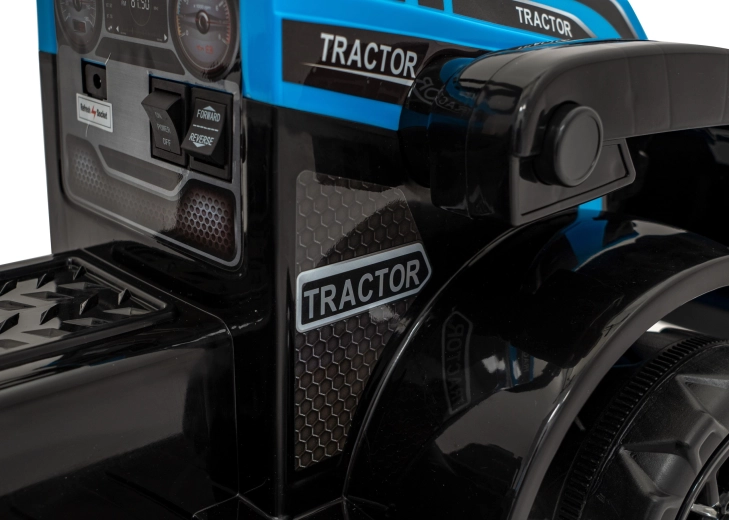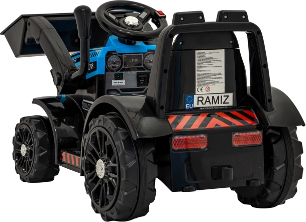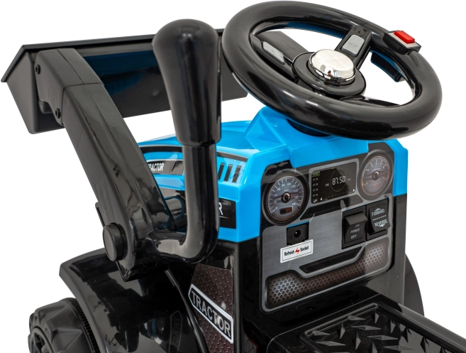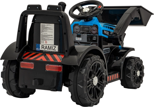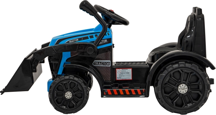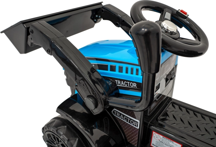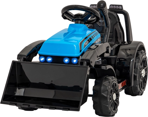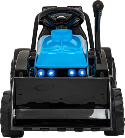 Slogoven otroški traktor s sprednjo nakladalno žlico za zabavno vožnjo in igre na gradbišču. Ponuja LED luči, melodije in hupo na volanu, pogonski motor 25 W in gumijast profil pnevmatik za boljši oprijem. Idealen za najmlajše voznike, ki želijo doživeti lastne dogodivščine.