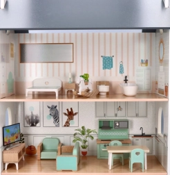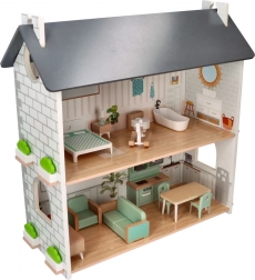 Hiška za punčke je zasnovana tako, da podpira ustvarjalno in domišljijsko igro. Sestavljena je iz dveh nadstropij, kjer se otroci lahko zabavajo z ustvarjanjem lastnih zgodb in scenarijev. Leseni material zagotavlja dolgo življenjsko dobo in trajnost.