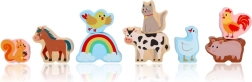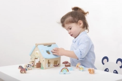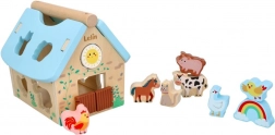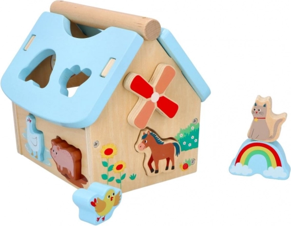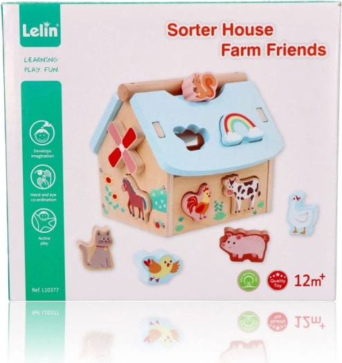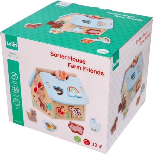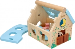 Ta lesena hišica z živalicami je popolna igrača za razvoj otrok od 12 mesecev naprej. Zasnovana je tako, da otroke navdihuje k učenju skozi igro. Hišica vsebuje različne barvite oblike in živalske figurice, ki jih je mogoče vstavljati v ustrezne odprtine, kar izboljšuje koordinacijo oči in rok.