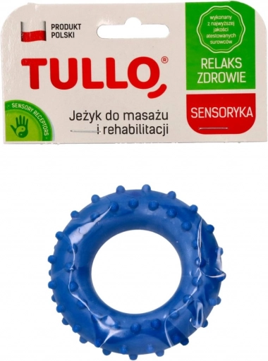 Rehabilitacijski obroč v modri barvi je zasnovan tako, da zagotavlja taktilno stimulacijo in boljši oprijem. Idealen je za rehabilitacijo, fizioterapijo in splošno krepitev rok. Zaradi svoje ergonomske zasnove se odlično prilagodi obliki roke, njegova tekstura z majhnimi izboklinami pa nudi dodaten oprijem.