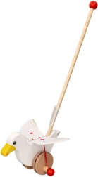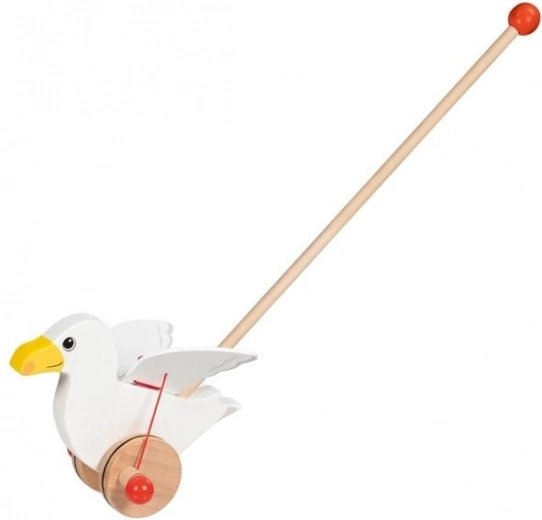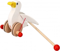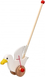 Ta kakovostna lesena ptica na palici se ob potiskanju elegantno premika, z mahanjem kril pa pritegne pozornost – hoja postane za male raziskovalce zabavnejša in bolj naravna. Zaradi čvrste konstrukcije in gladke obdelave je igrača prijetna v roki in enostavna za vodenje.