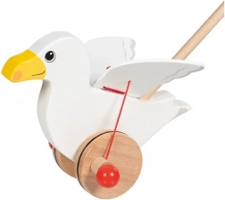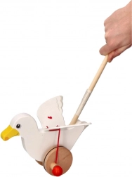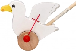 Ob vsakem potisku galeb razmiga krila, kar otroke naravno spodbuja k hoji in daljšim sprehodom. Zabava, ki hkrati razvija motoriko.