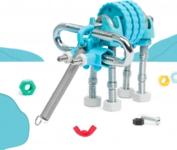 Vzdržljivi kovinski vijaki, matice in vzmeti v kombinaciji z barvnimi plastičnimi konektorji omogočajo stabilne, večkrat razstavljive modele.