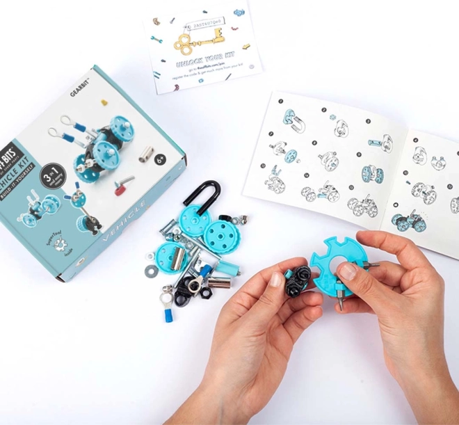 OFFBITS GearBit je zabaven in izobraževalen gradbeni komplet, ki otroke uvaja v svet STEAM – znanosti, tehnologije, inženirstva, umetnosti in matematike. Mali graditelji lahko kombinirajo dele, kolesca in konektorje ter ustvarijo vzdržljivo vozilo, pripravljeno za teren, ali povsem nove, izvirne projekte po lastni domišljiji.