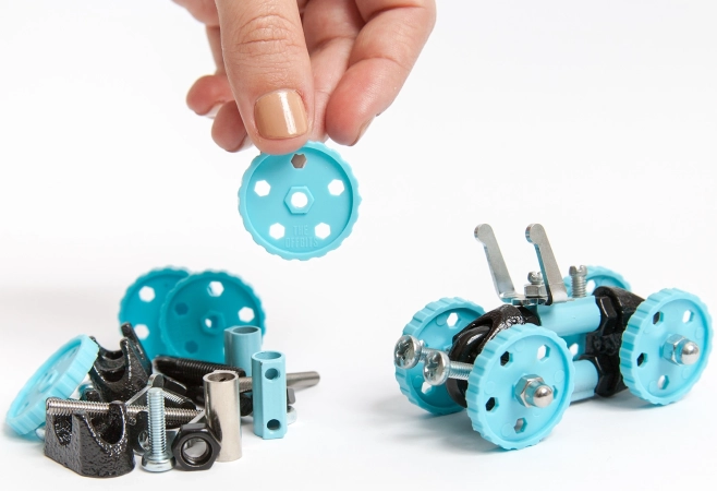 Z univerzalnim sistemom povezav in priloženim orodjem je sestavljanje intuitivno in zabavno. Komplet odlično podpira razvoj kreativnosti, reševanja problemov in potrpežljivosti. Za še več zabave lahko v gradnjo vključite tudi vsakdanje predmete – karton, vijake in druge materiale – ter svoje izume dvignete na višjo raven.