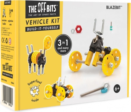 OFFBITS BlazeBit je izviren konstrukcijski set, navdihnjen s kulturo ponovne uporabe, ki vijake, kolesca in pametne konektorje spremeni v gibljive modele. Sestavite BlazeBit, MotorBit, AnimalBit ali si zamislite lastno napravo – domišljija ne pozna meja.