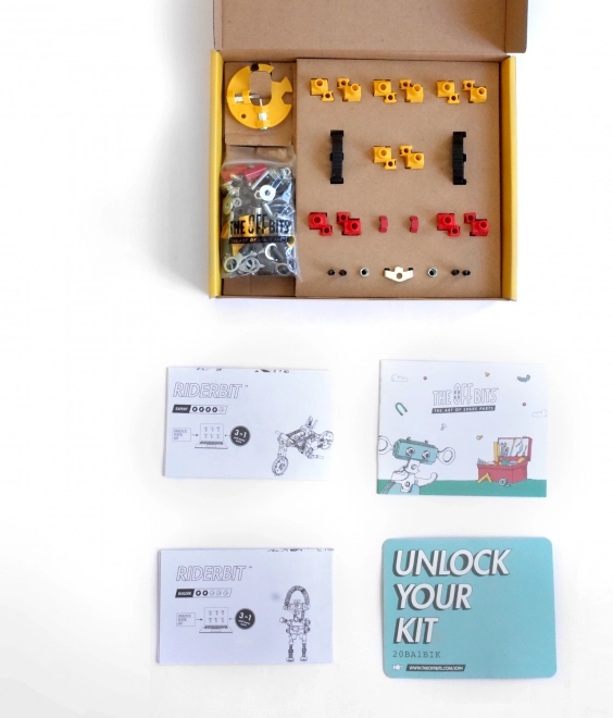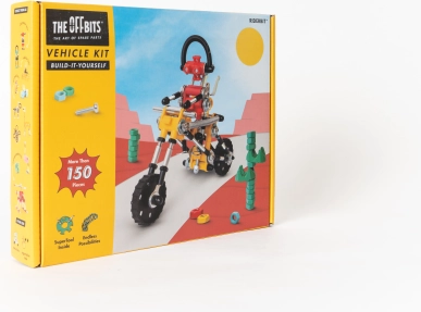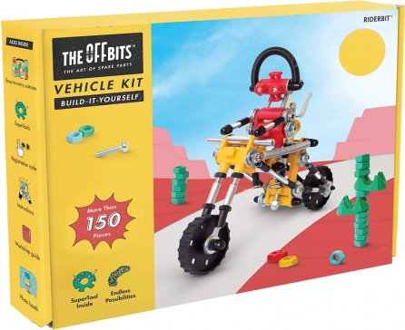RiderBit znamke The OffBits je zabaven in izobraževalen gradbeni set, s katerim si otroci sestavijo robota, ki vozi motor, ter druge modele. V pakiranju najdete več kot 200 kakovostnih delov, komplet koles in pametne spojne elemente, ki odpirajo vrata izvirnim idejam in eksperimentiranju.