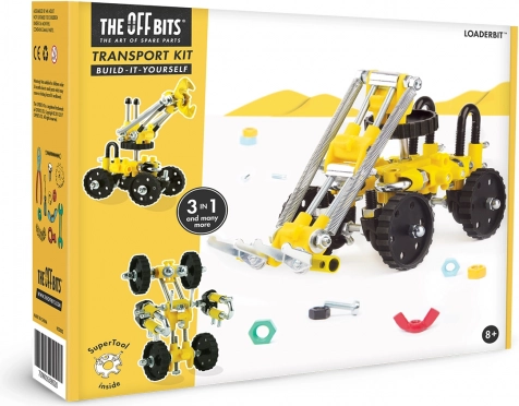 OFFBITS LoaderBit 3 v 1: 150+ delov, orodje v paketu, buldožer, robot in vozilo. Razvoj kreativnosti in logike. Idealno od 8 let. Dimenzije 14×8×11 cm.