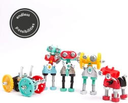 S tem kompletom ni problem ustvariti robote, avtomobile ali nenavadne izume. V ustvarjanje lahko vključite domišljijo in različne reciklirane materiale, kot so karton ali vijaki.