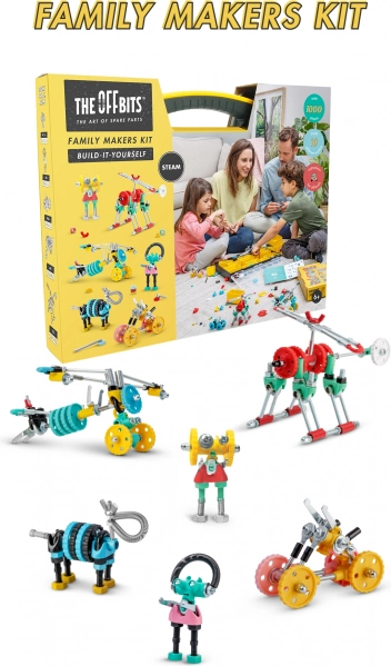 Ta družinski set je zasnovan tako, da ponuja neskončno zabavo za vso družino. Je popoln za skupinske aktivnosti, kjer lahko sodelujejo vse generacije. Zahvaljujoč svoji pestri vsebini je mogoče ustvariti vsaj deset modelov neposredno iz škatle. OffBits igrače podpirajo razvoj fine motorike, prostorske predstave, reševanja problemov in pomagajo pri razvoju v znanosti, tehnologiji, inženirstvu, umetnosti in matematiki.