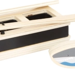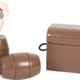 Odplujte v pustolovščine s to robustno leseno piratsko ladjo SMALL FOOT, polno podrobnosti in dodatkov. Čakajo vas dvižna jadra, delujoč top s kroglicami iz filca, premični pirati, čoln, papagaj, skrinja z zakladom, sod in morski pes. Realistični elementi, kot so sidro na vitlu, vrvene lestve, žerjav s kavljem in shranjevalni prostor v podpalubju, spodbujajo domišljijsko igro in razvoj otroške motorike.