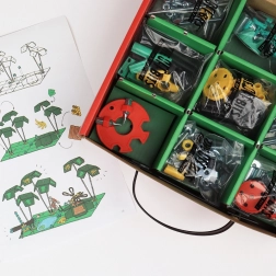 Potopite se v svet ustvarjalnosti z gradbenim kompletom JungleBit podjetja OffBits. Ta set omogoča izdelavo štirih osnovnih modelov: BeeBit, MonkeyBit in DragonflyBit, a s tem se možnosti nikakor ne končajo! S tem kompletom lahko zgradite različne druge edinstvene stvaritve in eksperimentirate z raznolikimi materiali iz gospodinjstva. Komplet podpira razvoj veščin na področjih znanosti, tehnologije, inženirstva, umetnosti in matematike, hkrati pa pomaga izboljšati fino motoriko in logično razmišljanje pri otrocih.