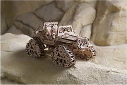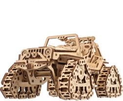 Potopite se v svet fine mehanike in odkrijte gosenično terensko vozilo UGEARS, ki odlično združuje inženirsko igrivost in obrtno lepoto naravnega lesa. Za pogon skrbi gumimotor z raglja mehanizmom, z izbiro med D (Drive), S (Sport) in P (Parking), stabilno vožnjo pa zagotavlja zadnje nihalo. Odpirajoč se pokrov razkrije »motor«, odprta kabina poudari realistično izdelavo, gosenice v slogu Mattracks/Rubtrack pa model spremenijo v pravo off-road vozilo.