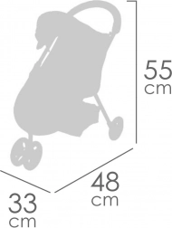 Tekstilni prevlek z motivom telovadke se ujema s celotno kolekcijo GALA, pod košaro pa najdete praktično shranjevalno košaro za igrače in drobnarije. Voziček je zložljiv, lahko vodljiv in pakiran v darilni škatli – odlična ideja za darilo za male mamice punčk.