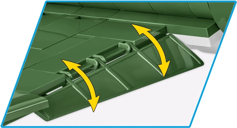Vrtljiv propeler, funkcionalna krilca in kolesa z gumijastimi pnevmatikami dajejo modelu živost in omogočajo interaktivno izkušnjo.