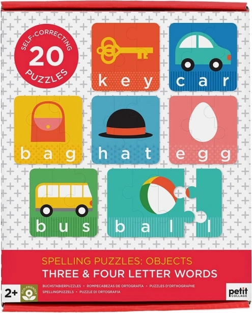 Predstavljamo odlično didaktično orodje Moje prve črkovanje Puzzles. Ta komplet vsebuje 20 samospremljevalnih sestavljank, ki otrokom omogočajo, da povežejo sliko z angleško besedo s 3 do 4 črkami. Vsakdanji predmeti so izdelani z izvirnim oblikovanjem, ki je privlačno in hkrati izobraževalno.