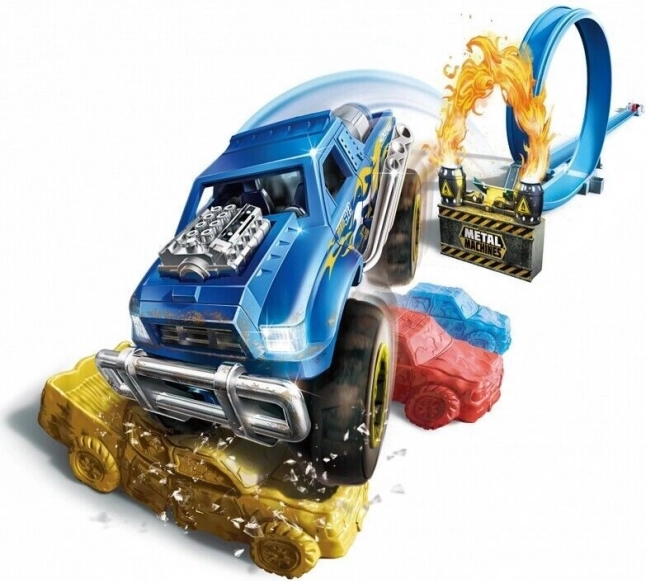Ta kaskaderska proga je zasnovana za največjo zabavo in razburljive vragolije. Izstreljevalnik zagotavlja močan sunek, ki pošlje kovinski avtomobilček skozi zanko in preko rampe, kjer izvede drzne skoke. Idealno za ljubitelje hitrosti in ustvarjalne igre.