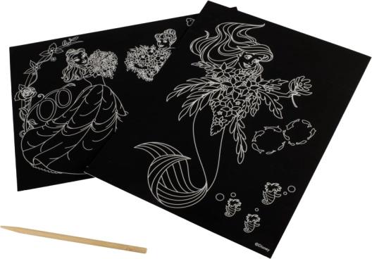 Ustvarjajte žive slike priljubljenih likov iz sveta Disney. Vsak list ima črno površino z belimi konturami, ki po praskanju razkrijejo pisane barve. Set je odličen kot darilo ali kot mirna ustvarjalna aktivnost doma ali na poti.