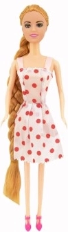 Ta punčka je popoln dodatek za vsako dekliško zbirko. Z dolgimi lasmi ponuja otrokom ustvarjalne možnosti za česanje in urejanje pričesk. Punčka je gibljiva in meri približno 30 cm, kar jo naredi idealno igračo tudi za manjše roke otrok.